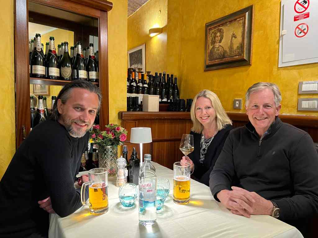 Then the grappas appeared, and we soon lost track of time. Resourceful Frane scored cigarettes from one of the servers. To my surprise, even Chris, who had kicked the habit two decades ago, joined him. A philosophical discussion ensued under a cloud of smoke. I can’t recall the details nor how we managed to save the world that night, but we had a good time.